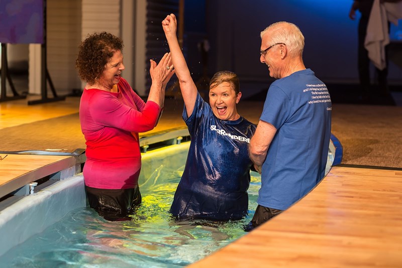Toward the end of our ROOTED study, we learned about the significance of Baptism. Before coming to Grace, I had never belonged to a church that practiced adult Baptisms and had honestly not given the matter much thought. My husband and I have enjoyed witnessing and celebrating other believer’s Baptisms during our time here, but since we were both baptized as infants, we weren’t sure we felt the need to participate. However, the thought-provoking lesson on Ceremonies in ROOTED described both Baptism and Communion as “public expressions of the Gospel of Christ.” It compared Baptism to a wedding ring – just as “the ring is a symbol of the covenant of marriage; Baptism is a symbol of the covenant of salvation.” Not only is Baptism an outward symbol of an inward (heart) change, but Baptism and Communion are two ceremonies that Jesus Himself modeled for us. Following the example of Jesus seemed like reason enough to me! I also went to my Bible and read as many scripture references on Baptism as I could find. Although I was reassured that Baptism is not necessary for my salvation, I became more convicted than ever that I wanted to “take the plunge” for Jesus. So when my ROOTED leaders announced that Baptisms would be offered as part of our Celebration Dinner, and that she and her husband would be the ones to actually perform mine, I didn’t hesitate to sign up!