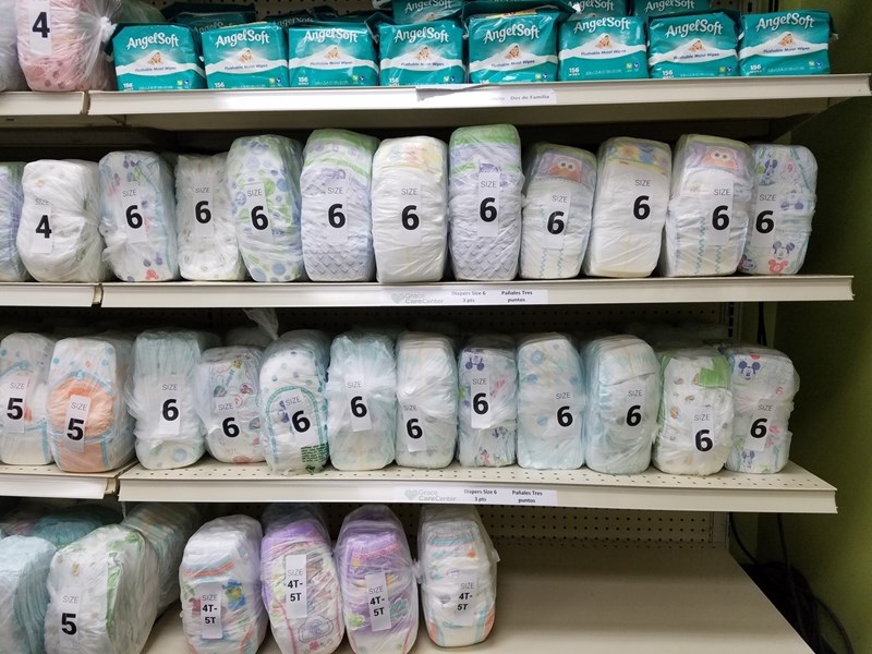 In the food pantry we understand the importance of all of these items. Which is why we do our best to stock as many of these essential needs as possible. But unfortunately there is one of these items that disappears off the shelf week after week. Do you want to guess what item that is? If you guessed diapers, you guessed correctly.
